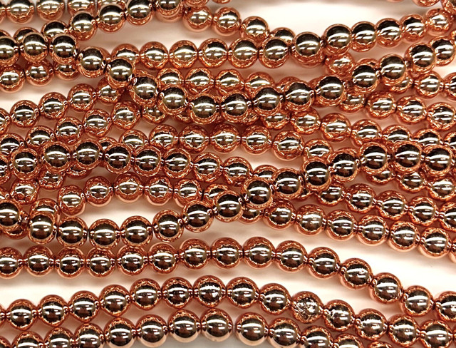 Bright Copper Electroplated Hematite gemstone beads. Expect some slight variation in size, color and quality as these beads were hand cut.