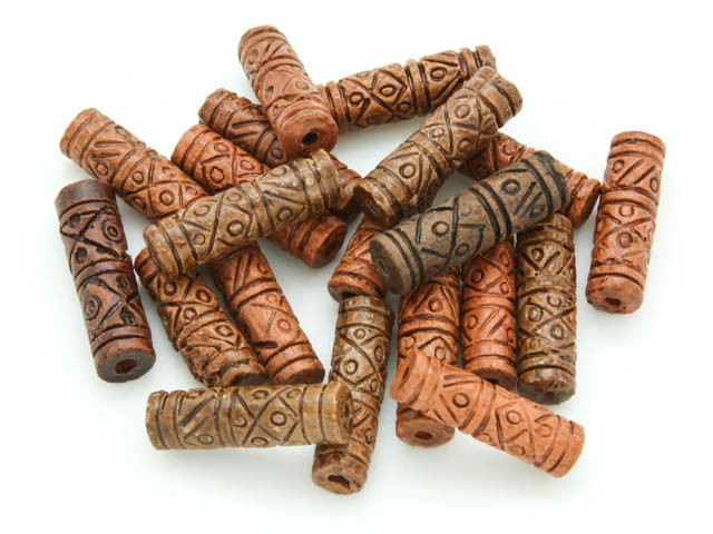 - Ceramic Carved Tube Beads 20mm - Peru (CER72)