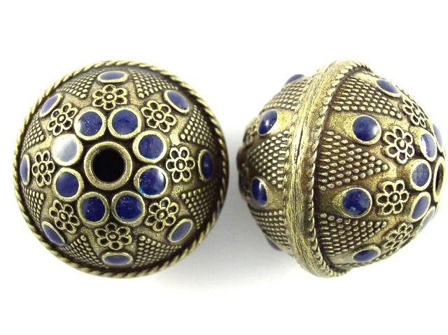 - Large Brass & Blue Enamel Bead 30mm (MB33)