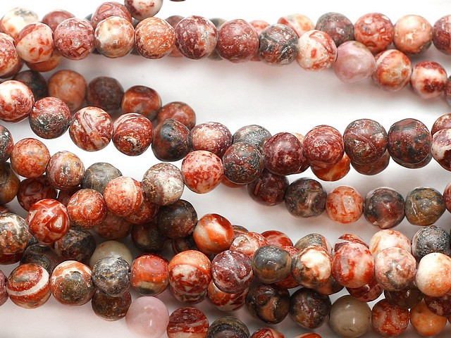 Leopardskin Jasper gemstone beads. Expect some slight variation in size, color and quality as these beads were hand cut.