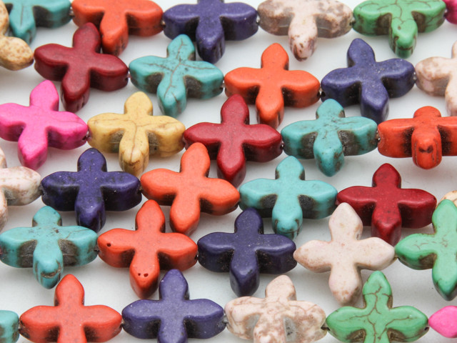 Dyed multi-color howlite gemstone beads. Expect some slight variation in size, color and quality as these beads were hand cut.