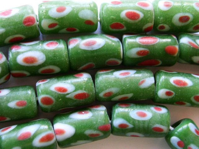 These glass beads were handcrafted in Java, Indonesia. As with all handmade beads, expect some slight imperfections in size, shape and color.