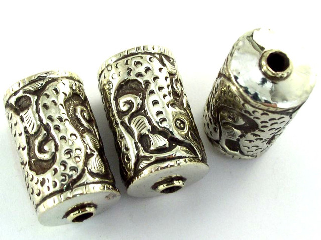 Hand crafted silver Tibetan bead with serpent. Expect some irregularity in the size and shape of this bead, as it was handmade and traditionally rustic in nature. Though the picture may show multiple beads they are sold individually and you will receive only 1.